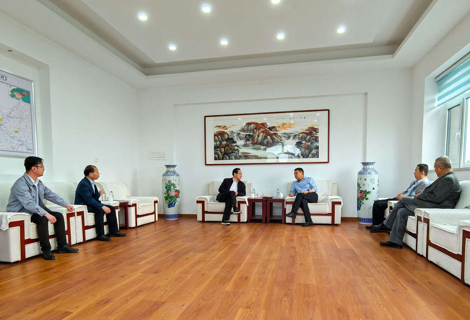 4月22日,濰坊市濰城區(qū)委常委、副區(qū)長石凌峰一行到訪濰坊水發(fā)供水集團座談交流,水發(fā)水控集團濰坊區(qū)域總經(jīng)理、供水集團董事長張勇陪同。